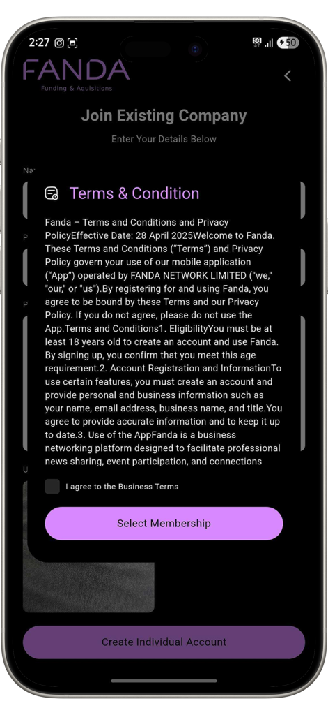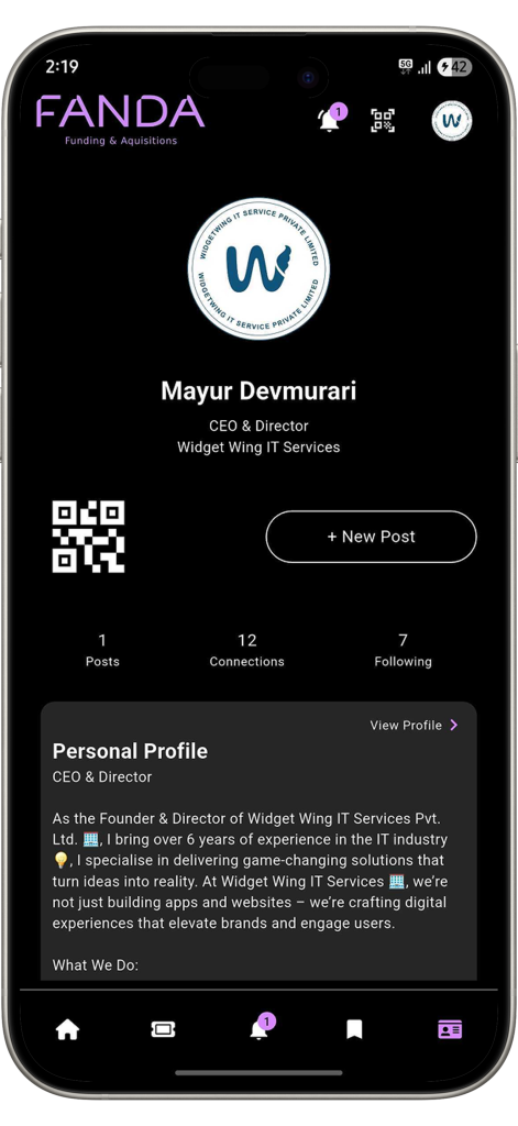Fanda is an exclusive private members club for companies and their employees—designed to elevate how professionals connect, communicate, and grow. Each member builds their own business profile, shares updates, follows companies, and connects with other professionals across the network. With premium access to members-only events, smart speed-networking technology, and seamless digital business card sharing, Fanda empowers businesses to expand their reach and build meaningful relationships with ease.